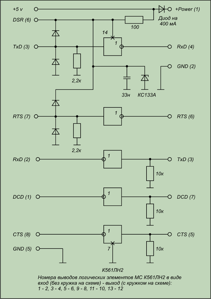 | Вот решил выложить простенькую схемку (см. приложенный файл) кабеля на логических элементах. Собирается очень легко. 100 проценов рабочая. Собирал и всё нормально Ждите скоро выложу схемку на микросхеме PL-2303.