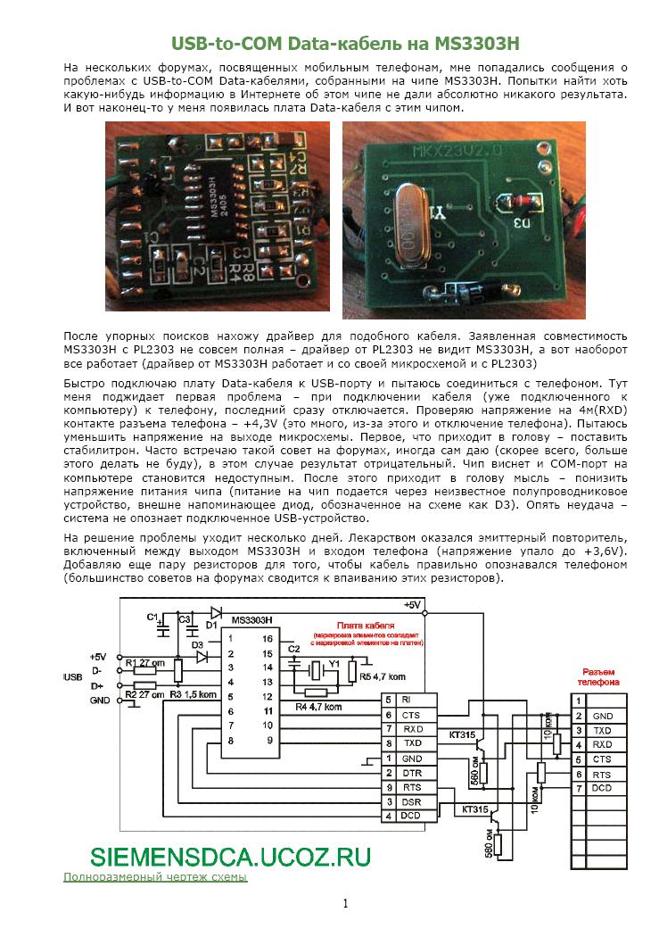 | У меня есть плата, с микросхемой типа Ms3303hg 4005 c каждой сторони по 8 ножок. Виходов на Usb 4 , на штекер тела 10 от микросхеми! При подключении к компу определяется "Prolific USB-to-Serial Comm port "